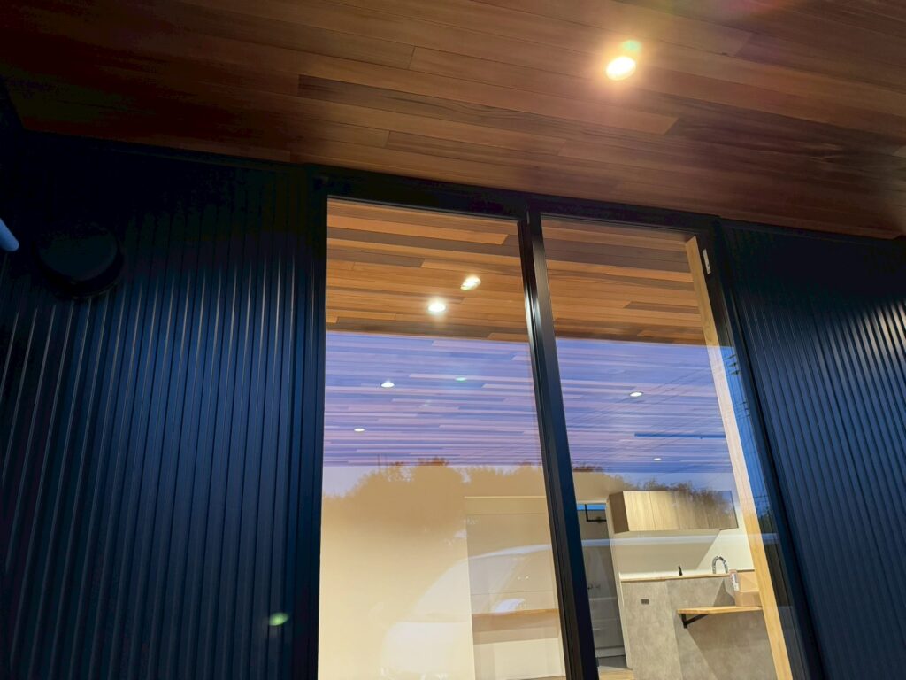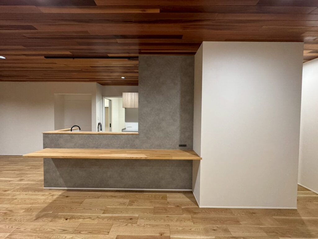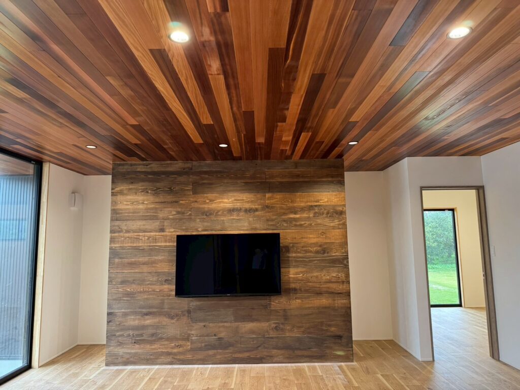 天井には美しい木目と深みのある色合いが魅力のレッドシダーを採用し、空間全体にあたたかく心地よい雰囲気を演出しています。